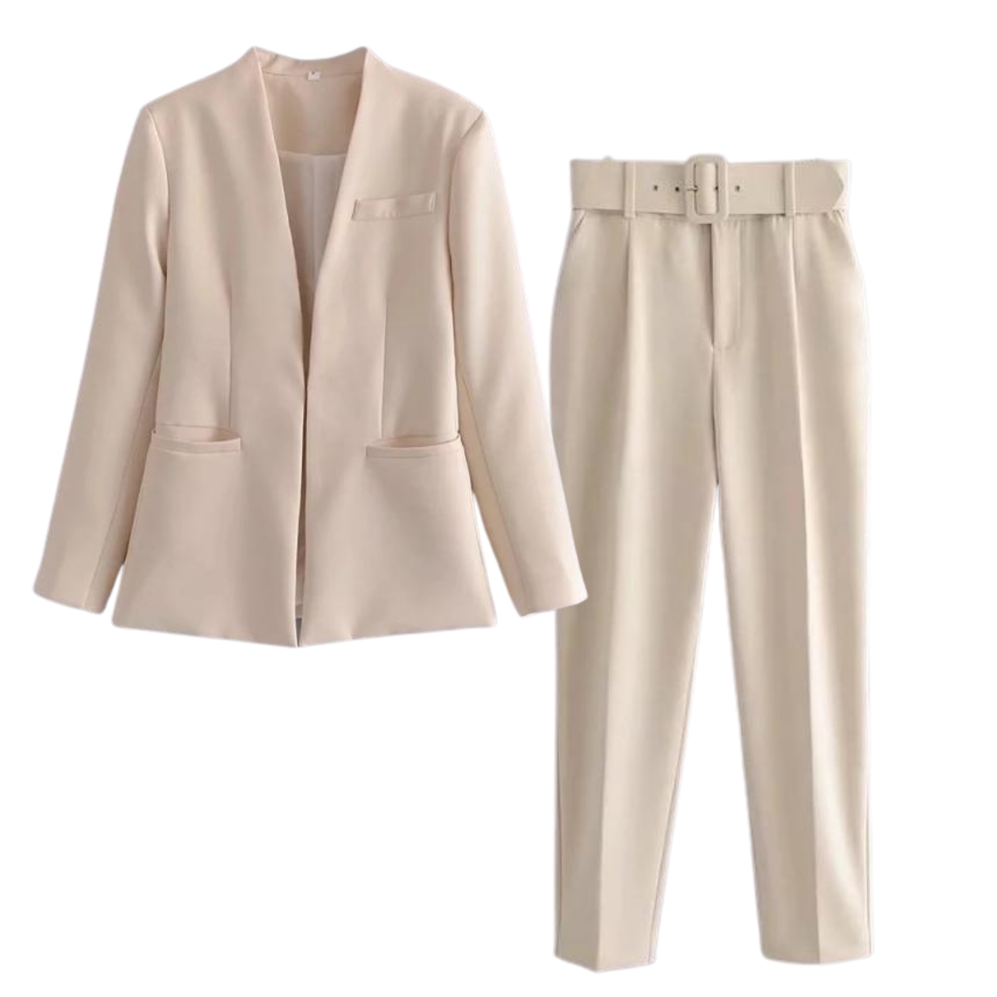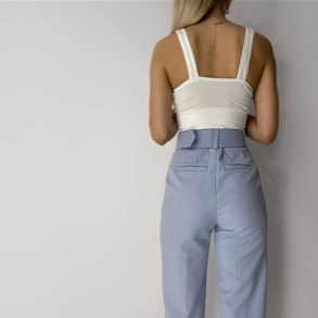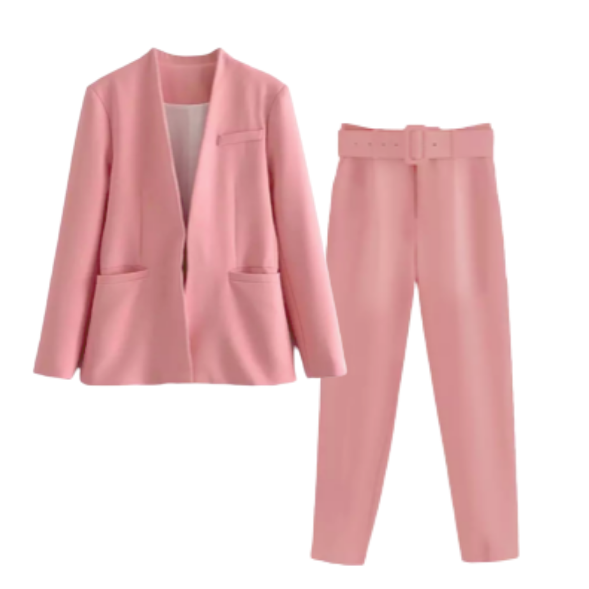 A modern twist on smart attire, this tailored trouser has a regular cut, with French pockets, a covered belted waistband and an ironed crease. The beautiful, tailored blazer is a striking piece that is both bold and understated. Etoilux enhances the features of the luxurious fabric in this masculine cut with feminine features. Luxuriously lined yet still light, it has a flat lapel and hook and eye closure. The delicate pastel shades of blue, pink, and off white blend harmoniously with collection prints.