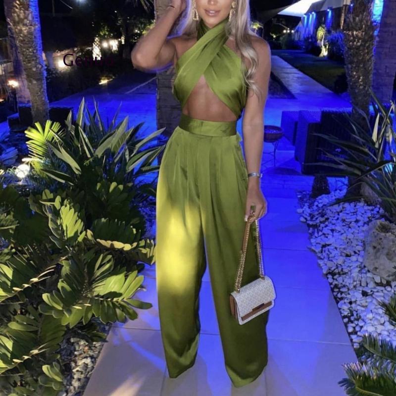 Kimma Sexy Two Piece Wide-Leg Pant and Wrap-Top Satin Set